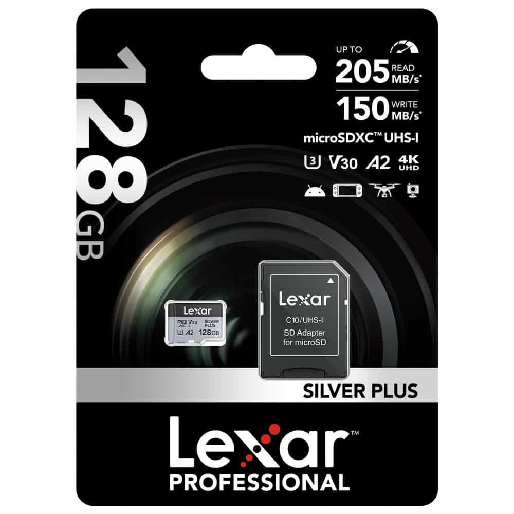 Sở hữu dung lượng 128GB cùng tốc độ truy xuất nhanh, Lexar Professional Silver Plus UHS-I Micro SD đáp ứng tốt nhu cầu quay video 4K/60p, chụp ảnh RAW, JPEG, chụp liên tiếp tốc độ cao và lưu trữ dữ liệu an toàn trong quá trình sử dụng.