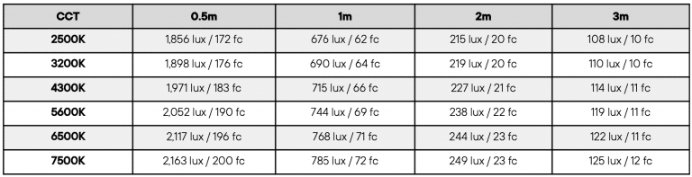 Công suất Mạnh & Quang trắc cao: Công suất 50W max, tạo ra 744+ lux@1m (5,600K) trên ống 120cm. CCT điều chỉnh từ 2,500K – 7,500K, cùng khả năng điều chỉnh xanh-lục/magenta.