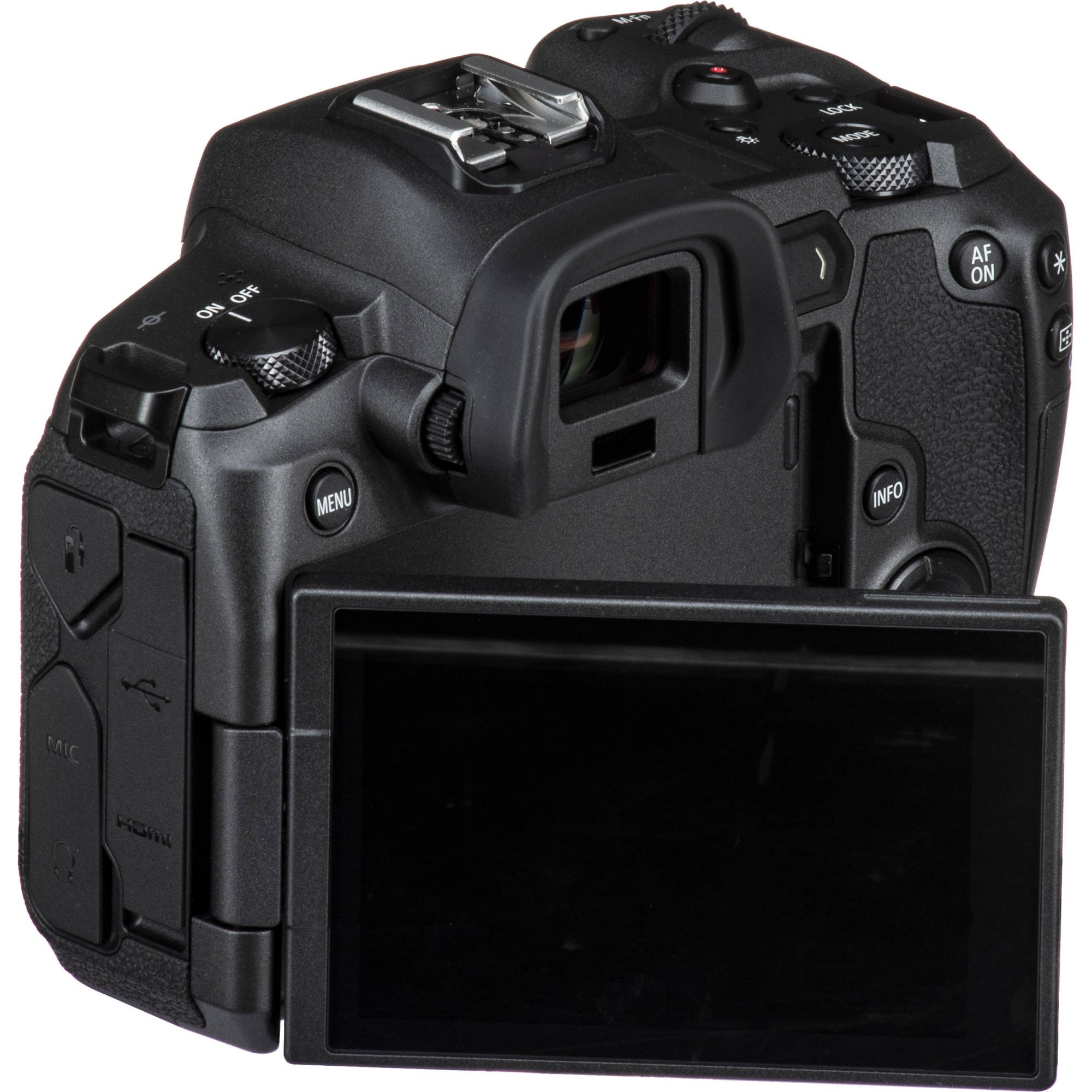 Canon R được trang bị màn hình LCD cảm ứng 3 inch, 3.15 inch, độ phân giải 2.1 triệu điểm ảnh, có khả năng xoay lật, tạo nên trải nghiệm quan sát dễ dàng. EOS R đã bổ sung thanh cảm ứng đa chức năng cho phép tùy chỉnh các cài đặt như ISO hoặc khẩu độ bằng cách vuốt hoặc chạm. Bố cục nút bấm và vòng xoay được tối ưu hóa, với joystick chọn điểm lấy nét và hai vòng điều khiển cực kỳ quen thuộc.