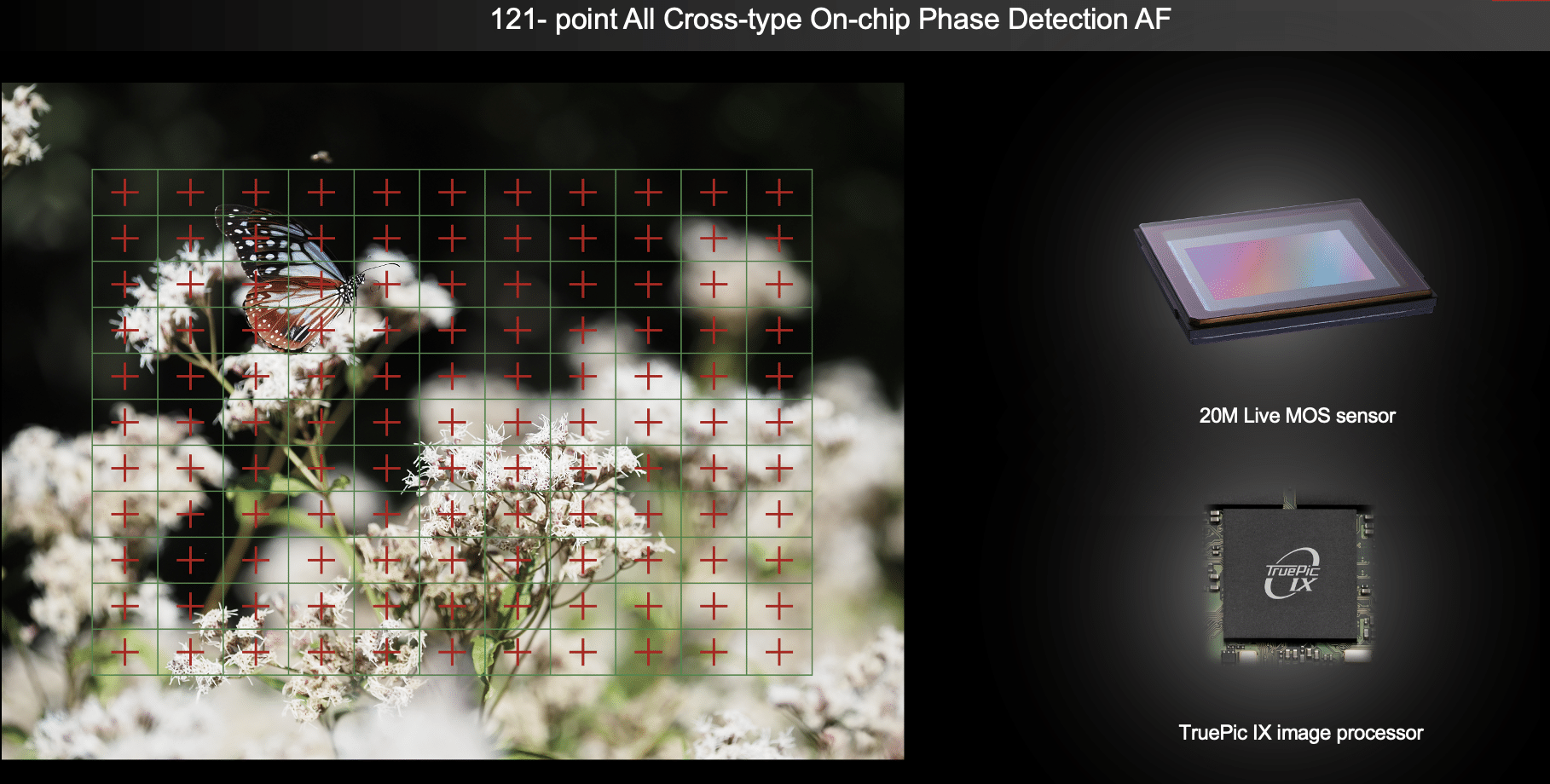 - Cảm biến và Bộ xử lý: Cảm biến Live MOS 20.4MP kết hợp cùng bộ xử lý TruePic IX giúp tái tạo dải chuyển tông mượt mà, kiểm soát nhiễu tốt và duy trì chất lượng ảnh cao ngay cả ở ISO cao.
