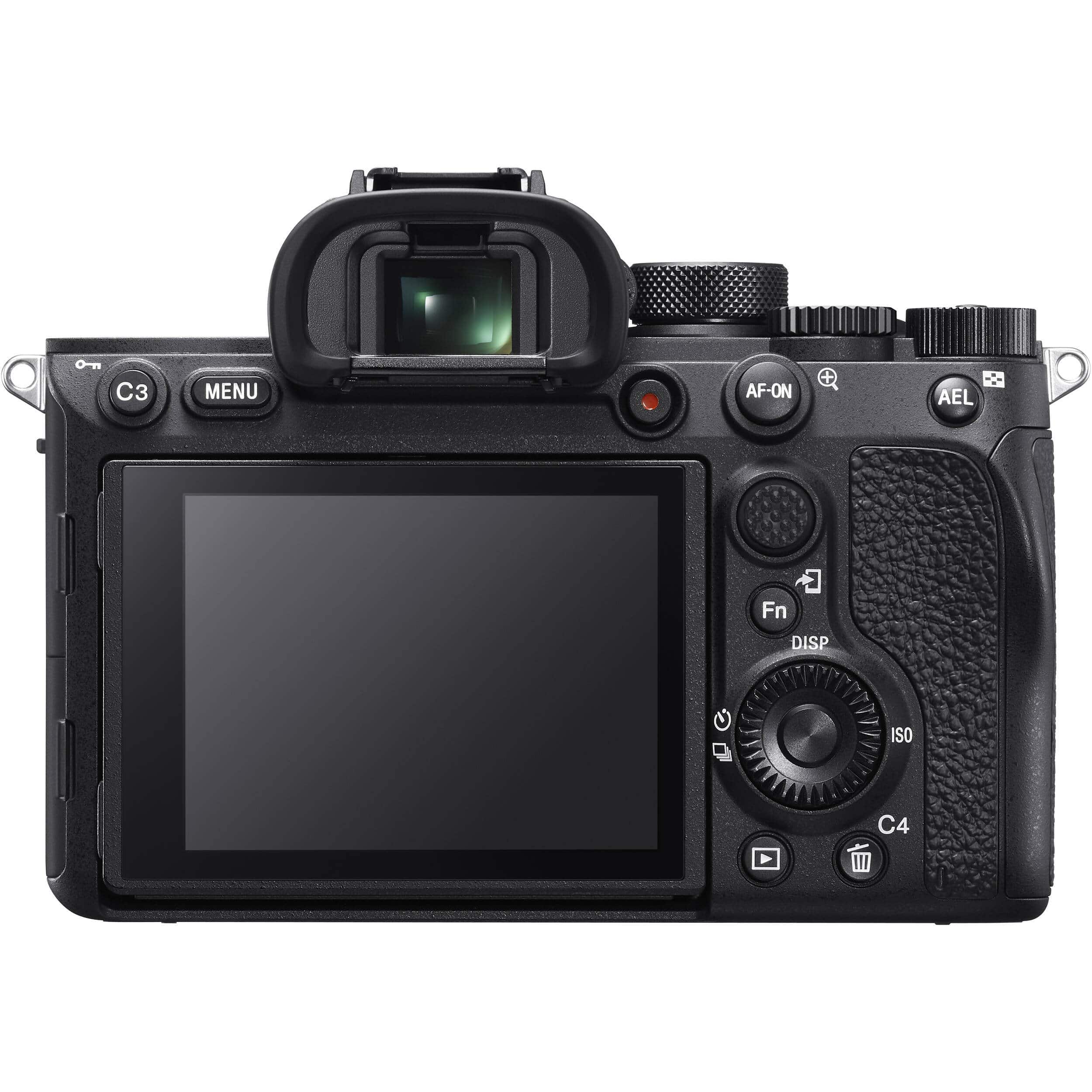 Sony A7R IV có điểm sáng là màn hình LCD 3 inch, 1.44 triệu điểm ảnh có cảm ứng, hỗ trợ chọn điểm lấy nét tuy không thể điều hướng menu. Một điểm sáng ở dòng sản phẩm này là kính ngắm OLED 5.76 triệu điểm ảnh sắc nét, gần như không lag, mang lại trải nghiệm tuyệt vời vượt trội so với bản mark III. Khung hợp kim magiê của máy tiện lợi khi chụp ngoài trời vì chống bụi và ẩm cải tiến, đặc biệt ở khe thẻ.